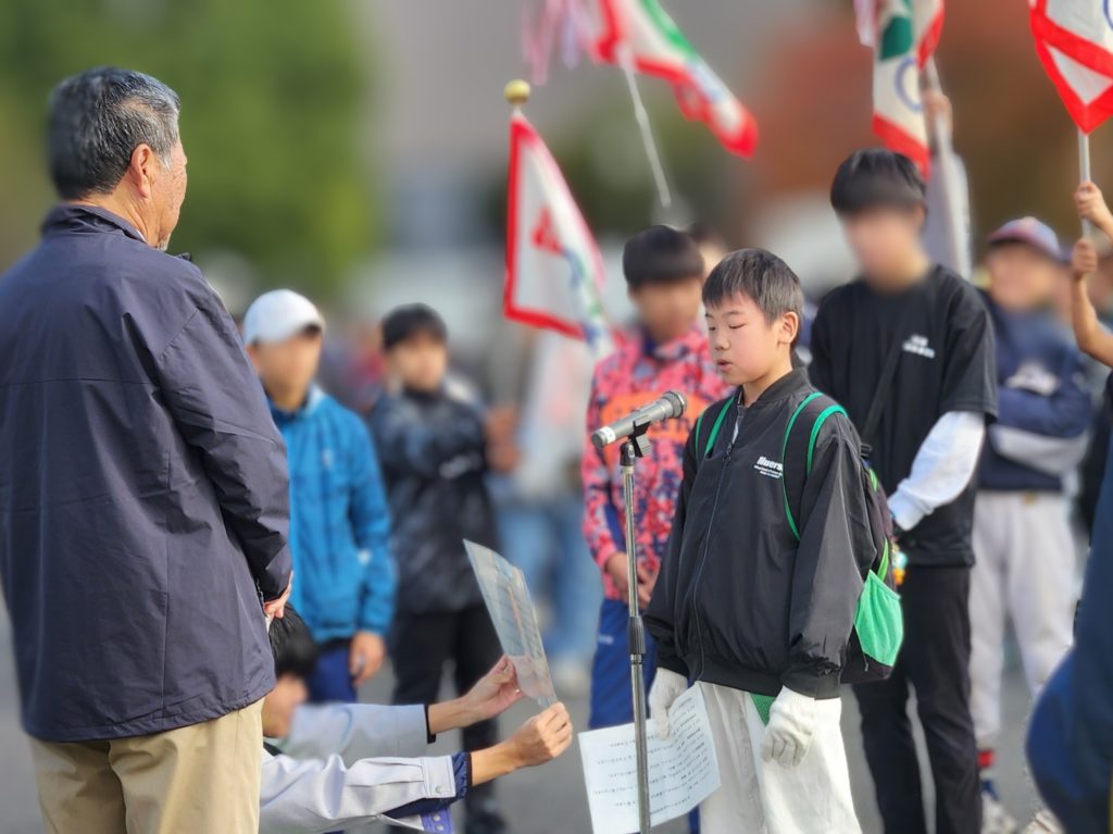 「仲間と一緒に協力してまちをきれいにしよう」と蓮田市総合市民体育館(パルシー)周辺を加盟スポーツ少年団が6コースに分かれ、公道沿いのごみ拾いを行いました。